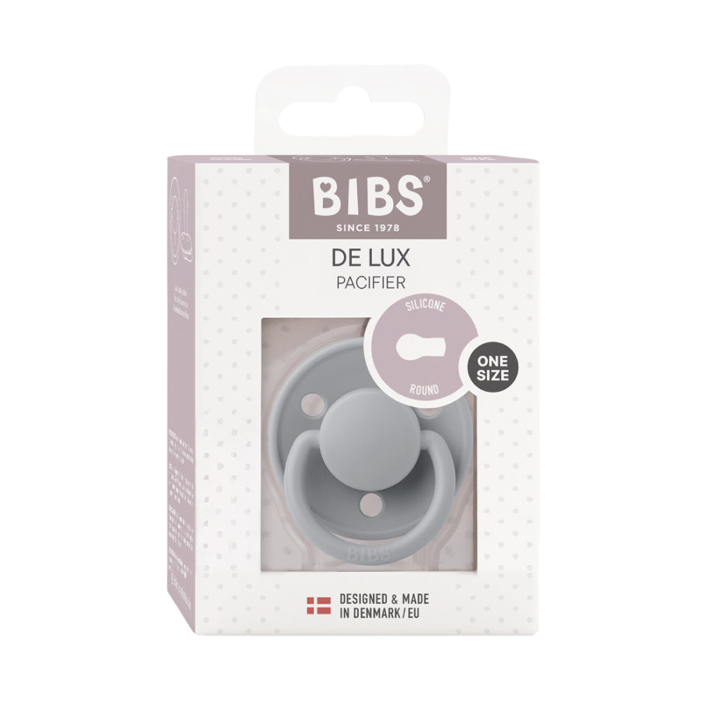 De Lux 圓形安撫奶嘴+奶嘴蓋套組-雲灰