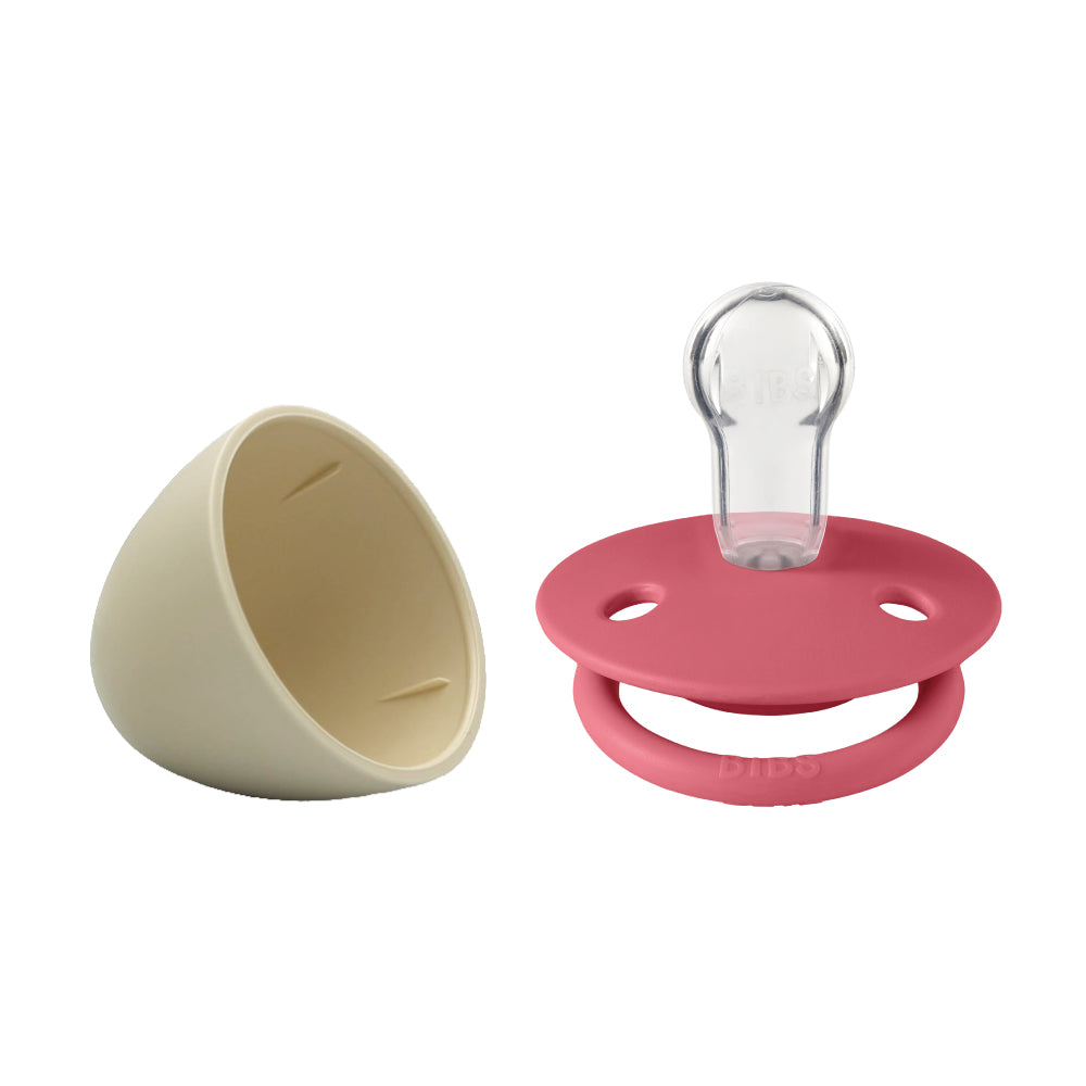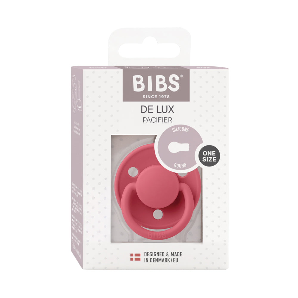 De Lux 圓形安撫奶嘴+奶嘴蓋套組-珊瑚紅