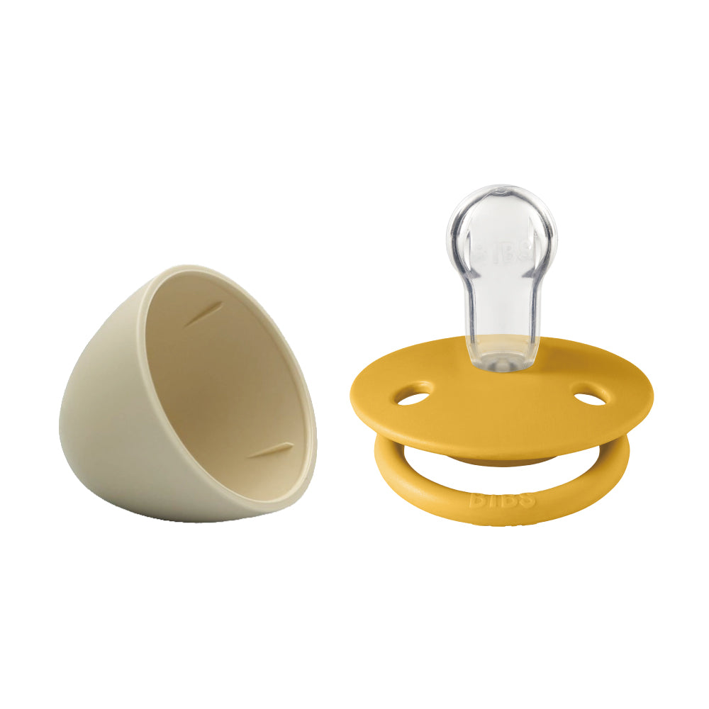 De Lux 圓形安撫奶嘴+奶嘴蓋套組-蜂蜜