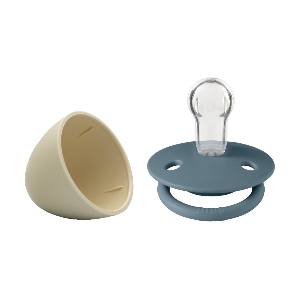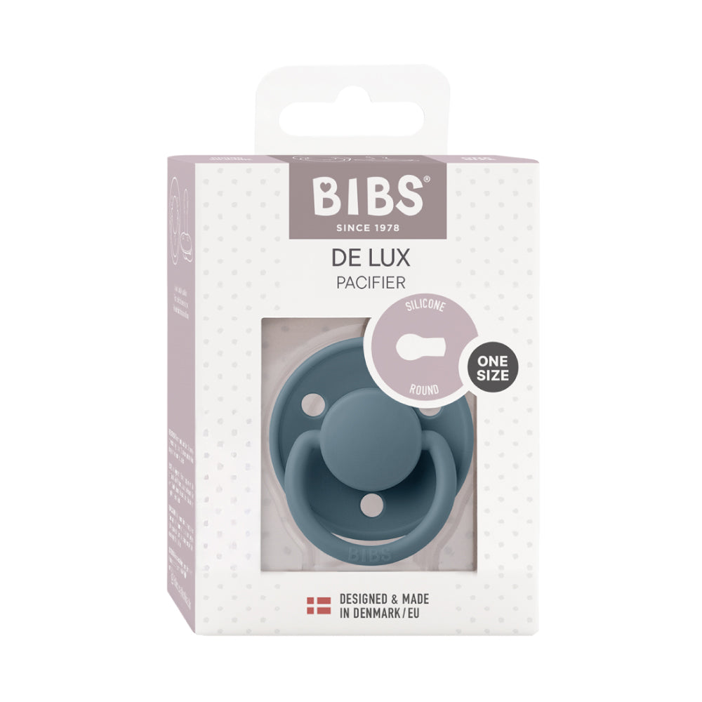 De Lux 圓形安撫奶嘴+奶嘴蓋套組-藍綠